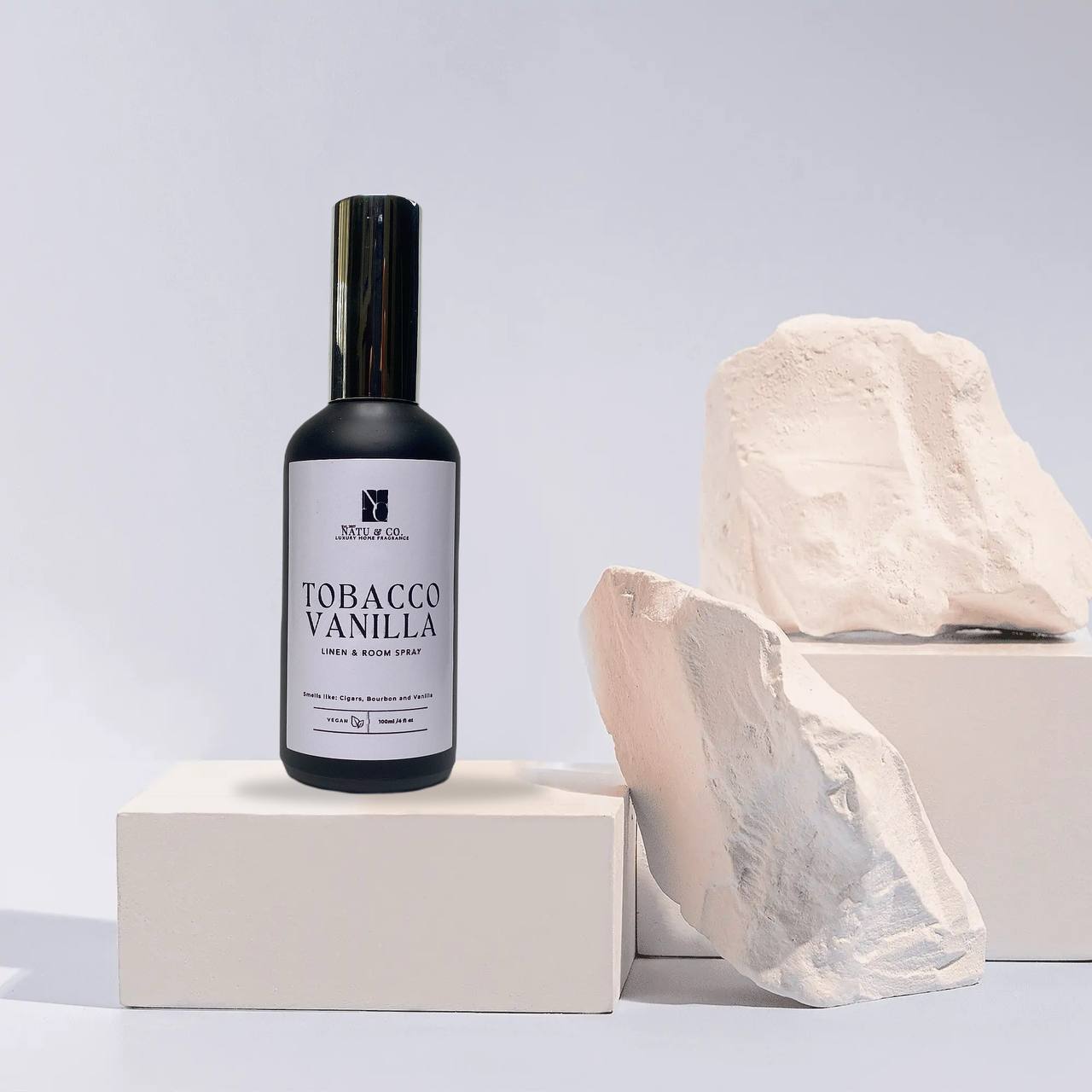 Immerse yourself in an aroma that exudes refined masculinity and timeless allure. Our Tobacco Vanilla Linen & Room Spray envelops your space in a sophisticated blend of smoky tobacco, layered with the warm richness of amber, and grounded by the sensual sweetness of tonka bean.