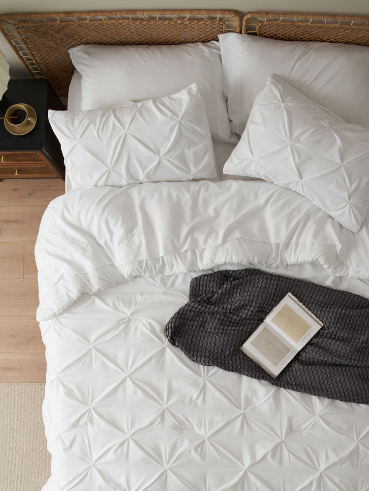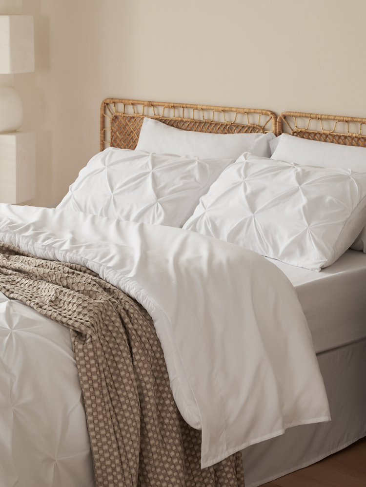 1 Pintucked 4.5 tog Comforter + 1 Fitted Sheet + 1 Flat Sheet + 2 Pintucked Pillow Shams + 2 Housewife Pillowcases